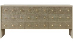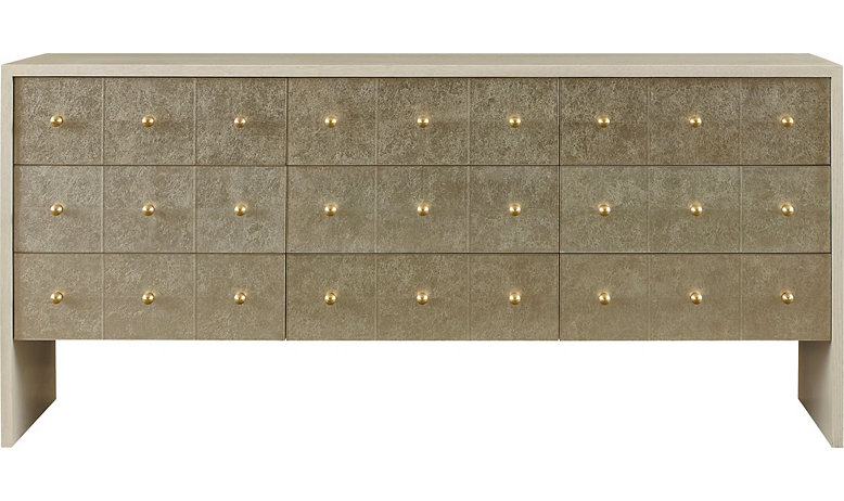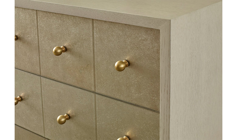 - 9 drawers, made to appear as 27 drawers, with the use of grooves on the drawer fronts