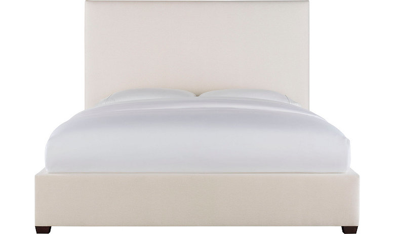 - Fully upholstered panel headboard with fully upholstered footboard and side rails