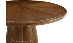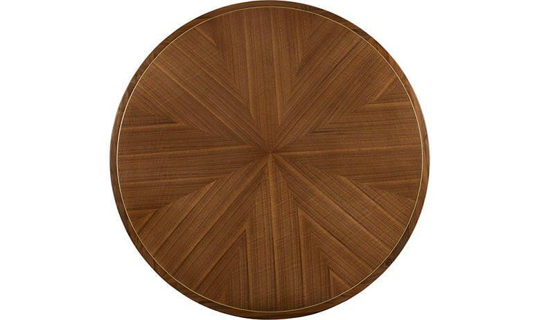 - Topped with a 60″ diameter sunburst patterned quartered figured walnut veneer top