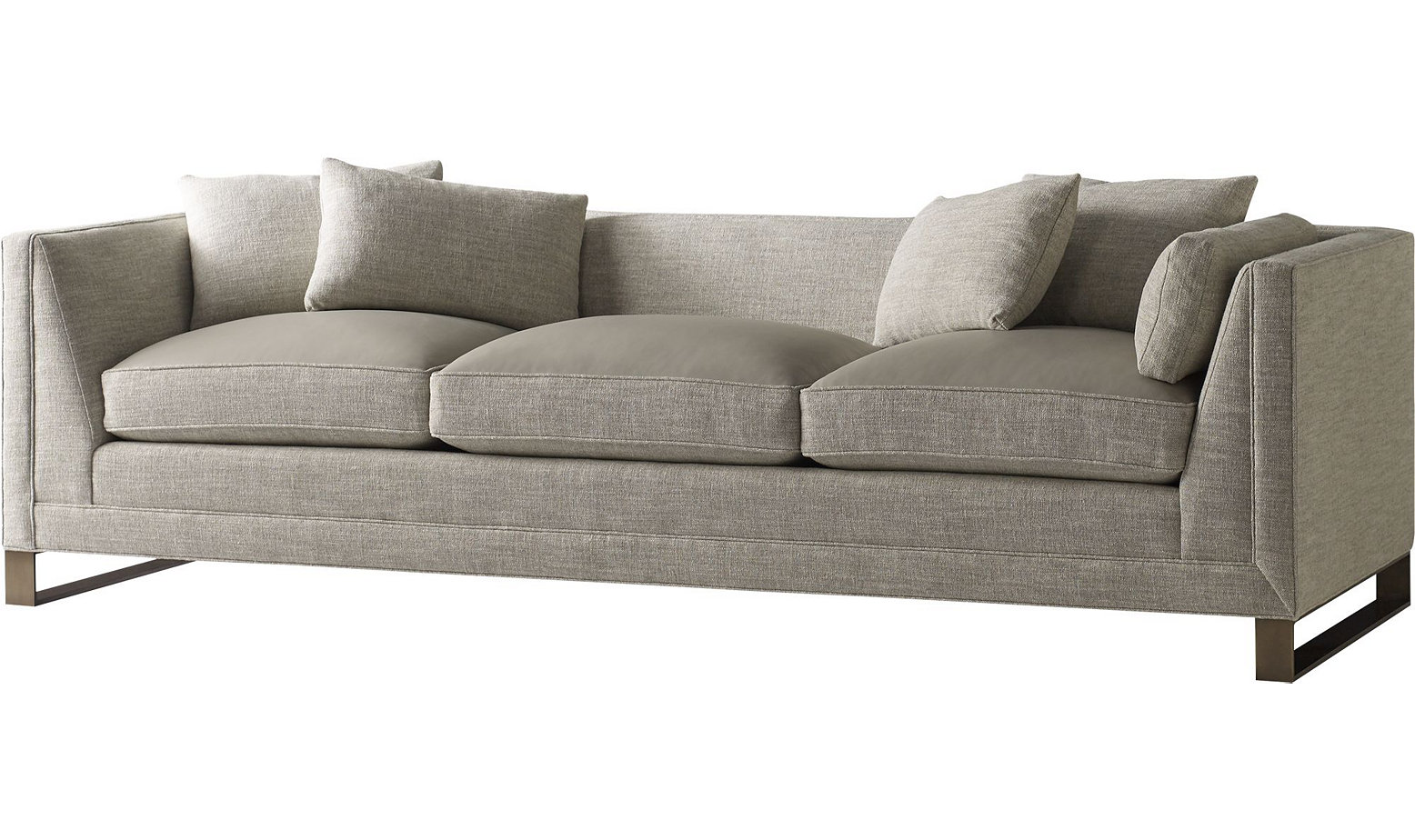 Loose seat cushions and tight back with arm pillow and four throw pillows