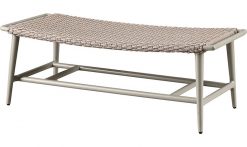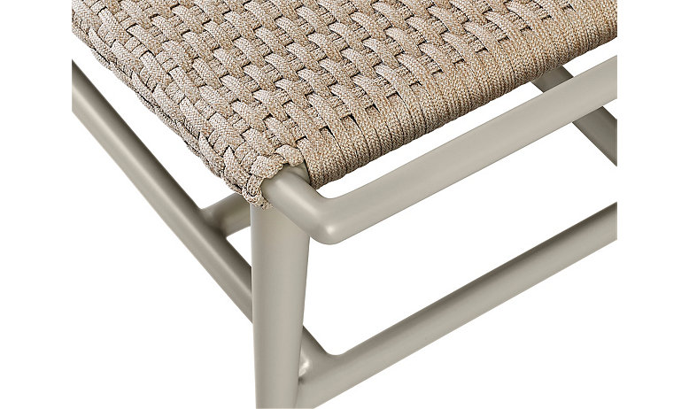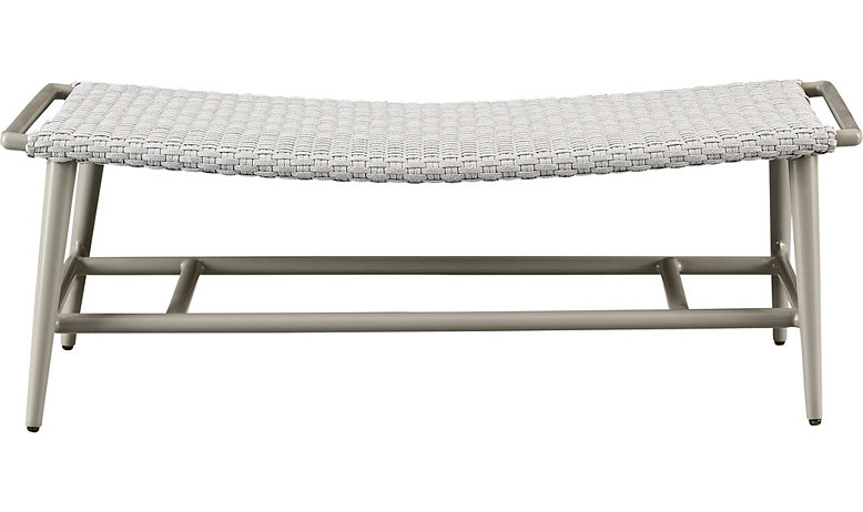 - Powder coated cast aluminum bench with flat, woven acrylic rope