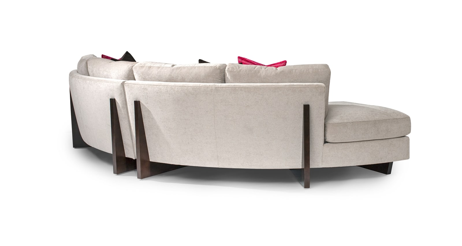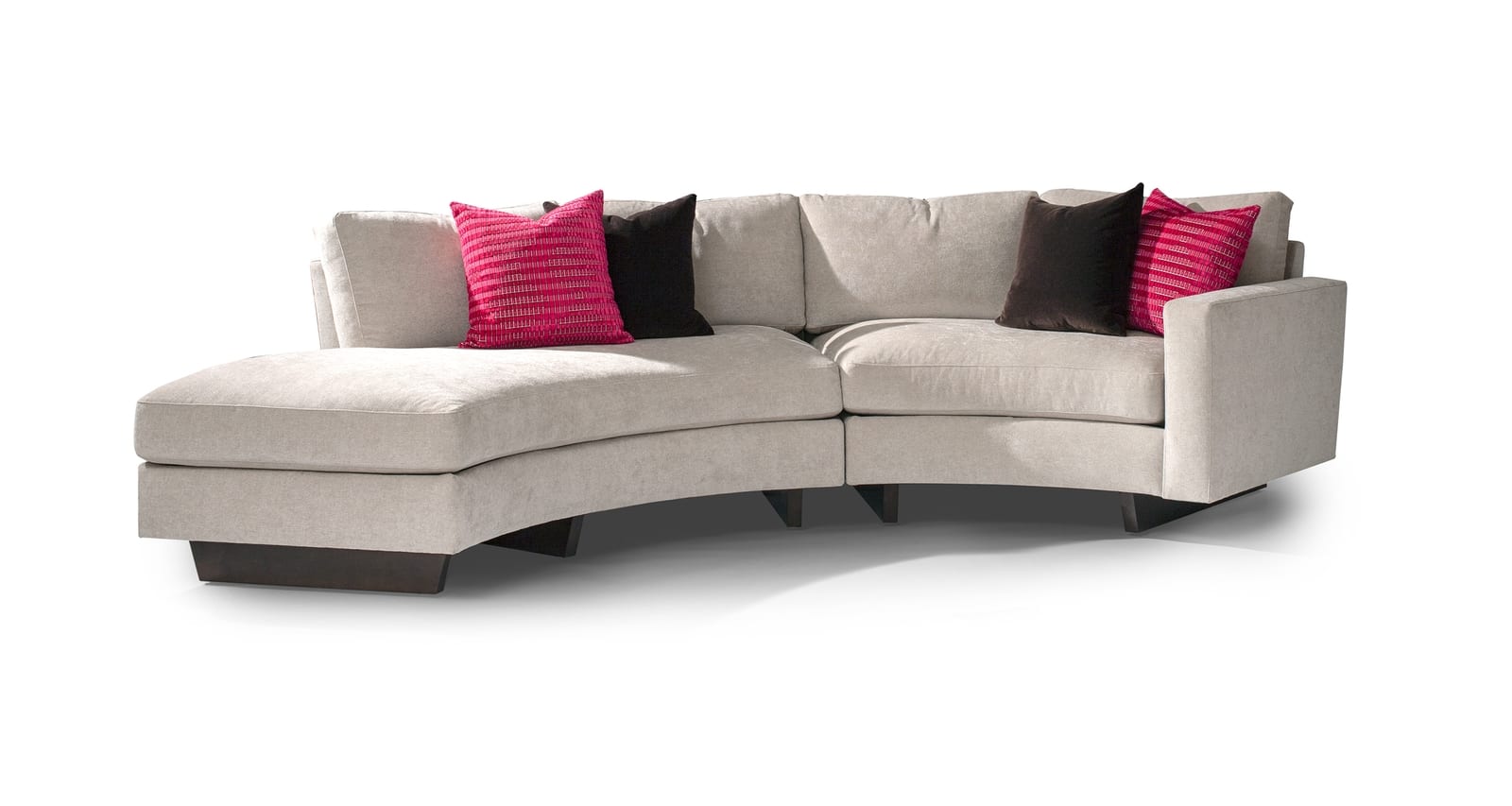 Designed by Ransom Culler, the Clip 2 sectional sofa is one of our new contemporary classics. Our Clip 2 series features unique “clips” that support the sofa but also give the sofa a handsome profile from both the front and back. The Clip 2 modular system is also one of our super systems with a multitude of modular units to mix and match. Our curved Clip 2 pieces can match with our Clip 2 straight pieces, allowing for a myriad of possible seating configurations. Clip 2 features spring down seating. Select from any of our in-house curated fabrics or leathers or provide COM. Choose any TC wood finish on maple for base and leg finish. Clip 2 is also available with polished stainless steel legs and base as Cool Clip 2, brushed bronze legs and base as Toasted Clip 2 or acrylic legs and base as Ice Clip 2.