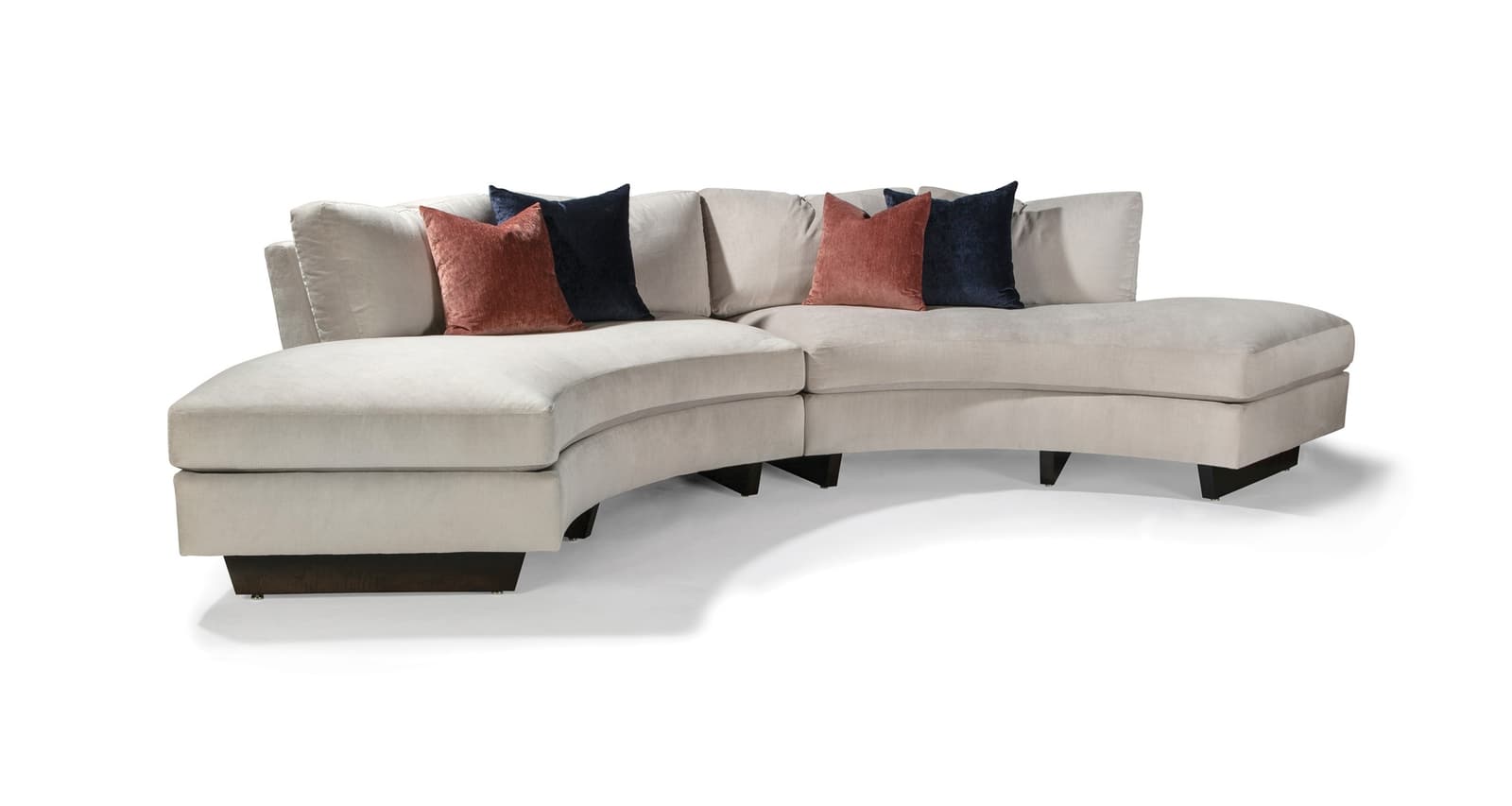 Designed by Ransom Culler, the Clip 2 sectional sofa is one of our new contemporary classics. Our Clip 2 series features unique “clips” that support the sofa but also give the sofa a handsome profile from both the front and back. The Clip 2 modular system is also one of our super systems with a multitude of modular units to mix and match. Our curved Clip 2 pieces can match with our Clip 2 straight pieces, allowing for a myriad of possible seating configurations. Clip 2 features spring down seating. Select from any of our in-house curated fabrics or leathers or provide COM. Choose any TC wood finish on maple for base and leg finish. Clip 2 is also available with polished stainless steel legs and base as Cool Clip 2, brushed bronze legs and base as Toasted Clip 2 or acrylic legs and base as Ice Clip 2.
