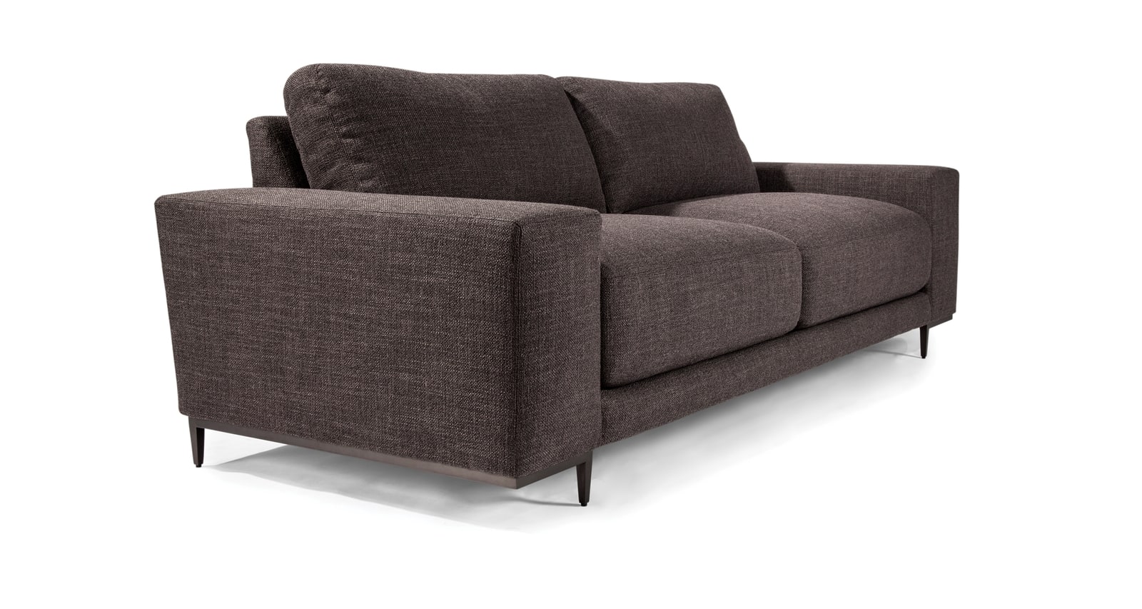 Designed by Ransom Culler, the Hangover sofa features cantilevered arms and luxurious poly blend down seats. Select one of our in-house curated fabrics or leathers or provide COM. Base and legs are available in dark bronze (shown) or polished stainless steel. Hangover is also one of our modular seating systems. More coordinating items for the Hangover can be found in our sectional sofa galleries.