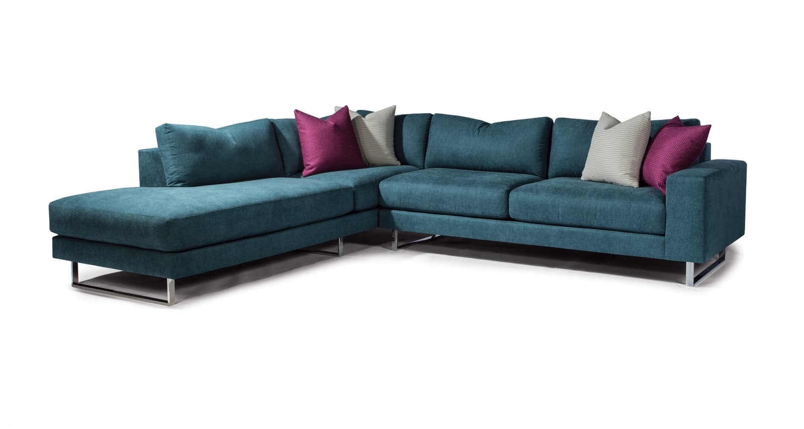 Designed by Guy Hill, our Mickey sectional sofa pairs crisp, modern sensibility with alluring comfort. Mickey’s modern styling is enhanced by rectilinear, polished stainless or bronze legs. Choose from five modular units to mix and match. Select from any of our in-house curated fabrics or leathers for upholstery.