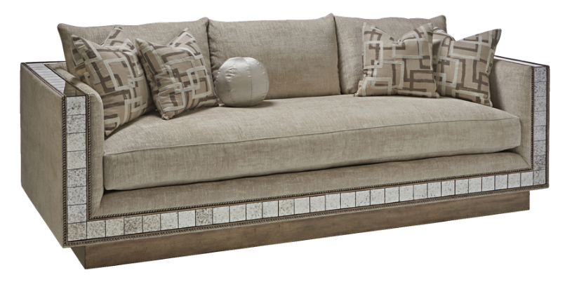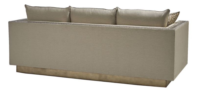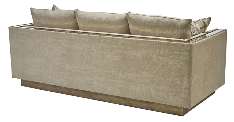 Built-to-the-floor wood frame in Silver Cloud leaf finish with