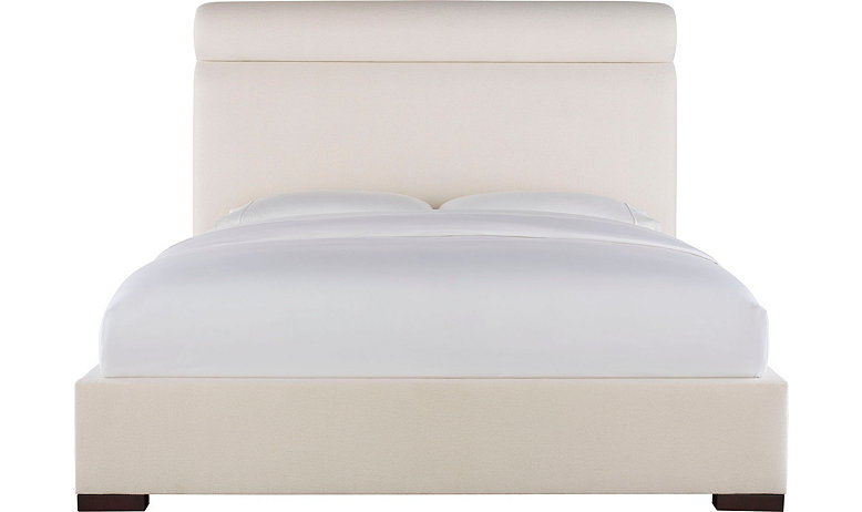 - Fully upholstered headboard, footboard and side rails. Integrated bench at base not available