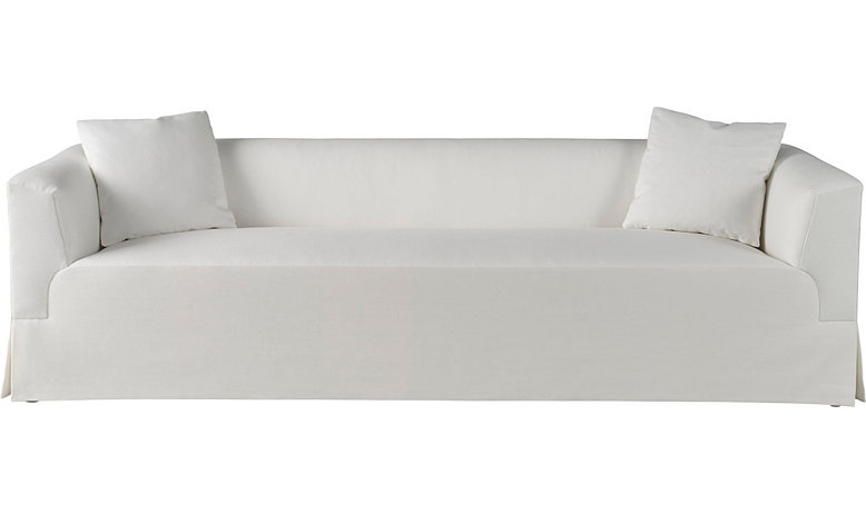 - Fully upholstered skirted sofa
