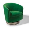 Originally designed in 1965 by Milo Baughman, the Roxy-O swivel-tilt tub chair is a modern classic. Featuring a metal base, button tufting and our unique swivel-tilt mechanism, Roxy-O is a timeless lounge chair for all environs. Select a metal base finish: polished stainless steel (No. 1396-113), brushed bronze (No. 1396-113-B) or satin brass (No. 1396-113-SB), and choose from all our in-house curated fabrics or leathers or provide COM. Also available with an upholstered base as Roxy or a wood base as Roxy Would.