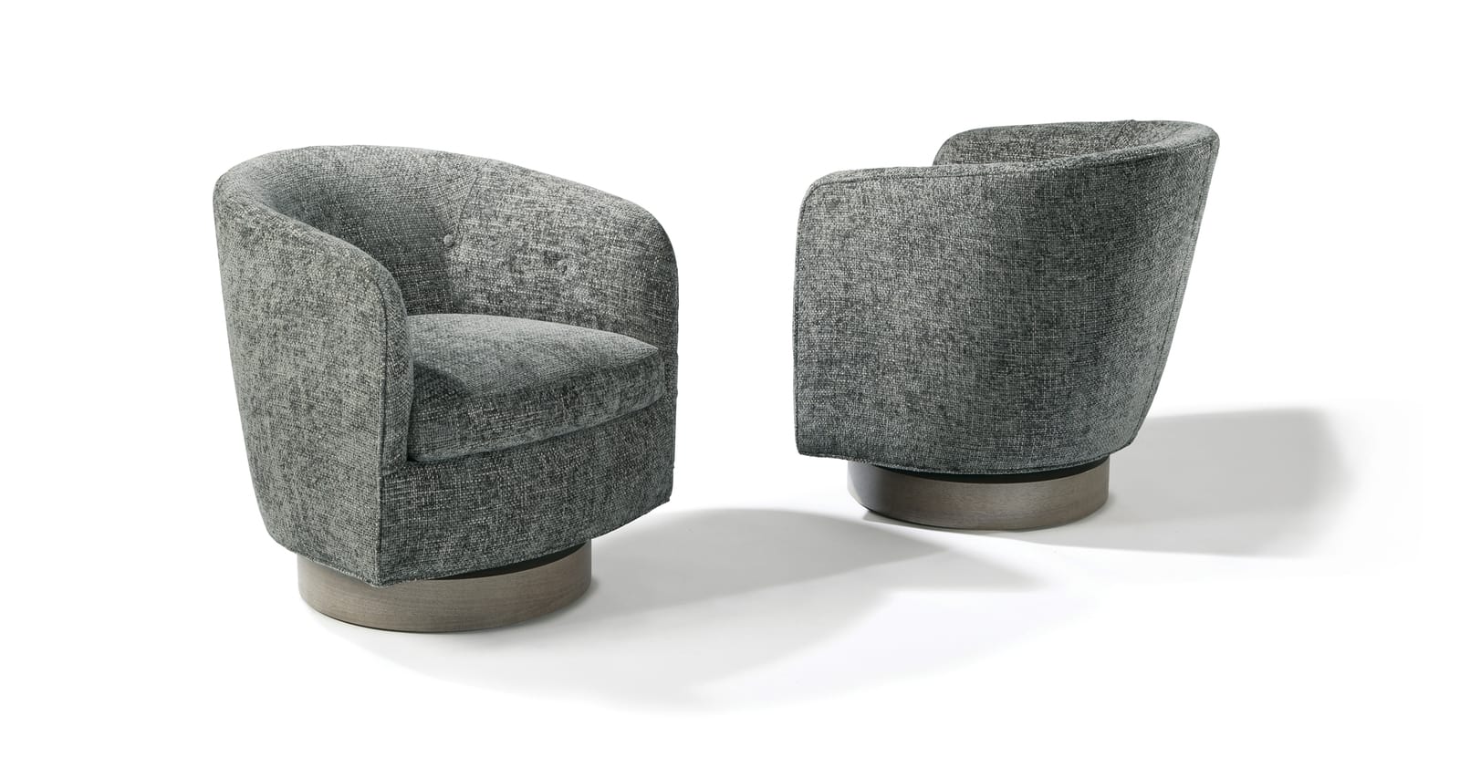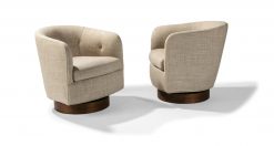 Originally designed in 1965 by Milo Baughman, the Roxy Would swivel-tilt tub chair is a modern classic. Featuring a walnut wood base, button tufting and our unique swivel-tilt mechanism, Roxy Would is a timeless lounge chair for all environs. Choose any of our in-house curated fabrics or leathers or provide COM. Select any TC wood finish on walnut for wood base.