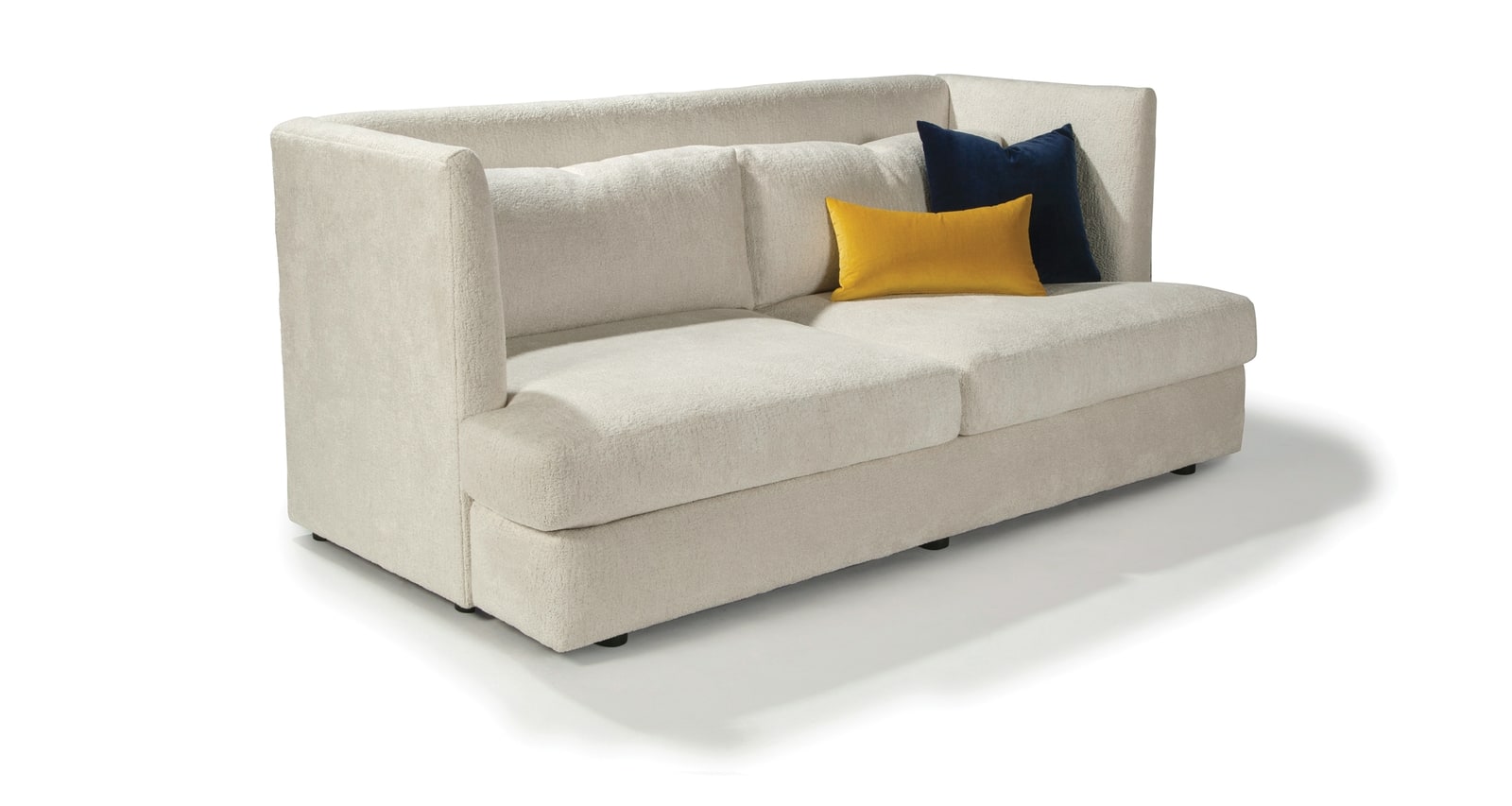 A Milo Baughman masterwork, our timeless Shelter sofa is an unparalleled modern classic. Born out of Baughman’s philosophy that furniture should provide social and emotional benefits, the Shelter sofa’s high back and arms embrace its inhabitants providing both comfort and personal space. The high back supplies style and distinction while also serving as a room divider – delineating area usage in open space environs. The Shelter sofa is handcrafted to easily breakdown into two large segments for ease of moving. Select from any of our in-house curated fabrics and leathers for upholstery or provide COM.