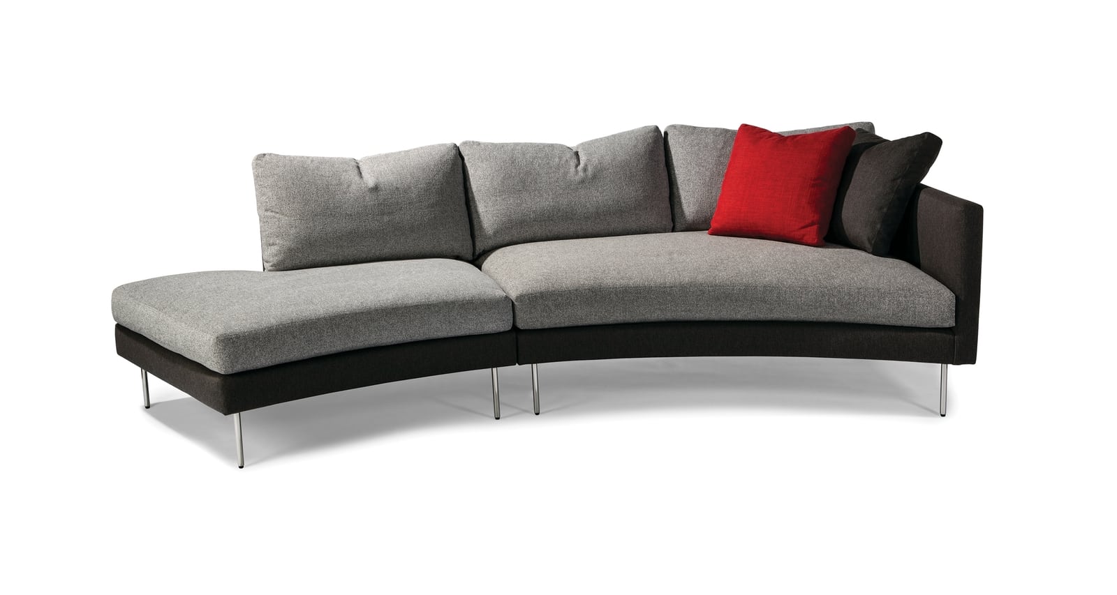 The Slice seating system is an innovative sectional lounging collection designed by Ransom Culler. Let your imagination run wild with seating possibilities with the 12 distinct modular units available in the Slice system. Featuring gently curved frames, thin-lined legs and luxurious cushioning, Slice is a versatile and expansive seating system. Loose poly blend down seat cushions and fiber down loose backs are standard. Choose from dark bronze or polished stainless steel for legs. Select from any of our in-house curated fabrics or leathers for upholstery or provide COM.