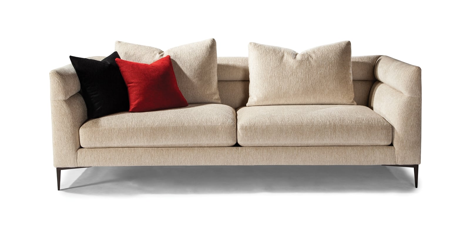 Designed by Ransom Culler, the Spaced Out sofa is one of our new contemporary classics. The Spaced Out sofa features sophisticated thin lines with channeled back and arm upholstery. Select from our many fabrics or leathers or provide COM. Legs are available in liquid bronze finish (shown) or in polished stainless steel finish. Coordinated items are also available, see more of Spaced Out in our sectional seating galleries.