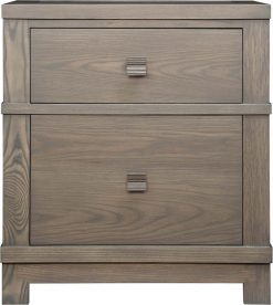 The clean lines and casual elegance of the Ashwood Nightstand offer functionality on a grand scale. Below the generous surface, two side-hung, center-guided dovetail drawers allow you to store items out of sight yet still within reach. The sturdy block feet reflect Stickley’s tradition of enduring construction. Available in Tidewater or Flax finish.