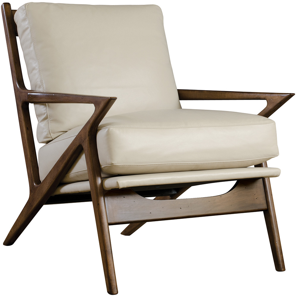 Elroy pairs plush Stickley comfort with eye-catching mid-century modern style. Distinctive angular frames on both the chair and ottoman are crafted from solid beech.