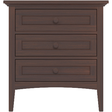 This piece is constructed of solid maple with three drawers, plus frame-and-panel ends and drawer fronts. Its beveled top, bottom dust panel, tapered post base, and mortise-and-tenon joinery coordinate with other Revere bedroom pieces. In your choice of Origins by Stickley finish and curated hardware.