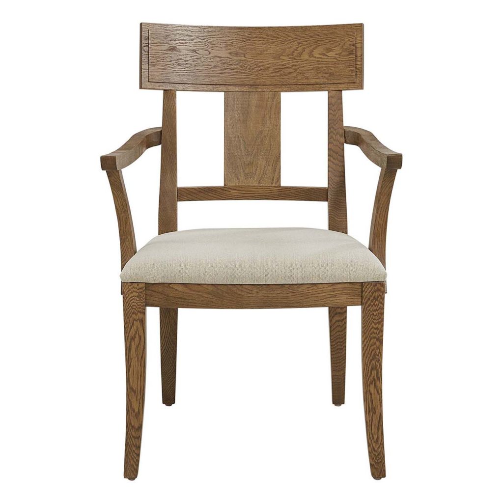 For the very special St. Lawrence Curved Arm Chair, we’ve updated a traditional form by subtly modifying its lines. Every element of the solid oak frame—from the legs to the sinuous arms to the cradling back support—has been given a soft curve, for a flowing look and reliable comfort. Pinned mortise-and-tenon joinery provides strength and stability, and the plush, tight seat can be upholstered in fabric or leather.