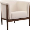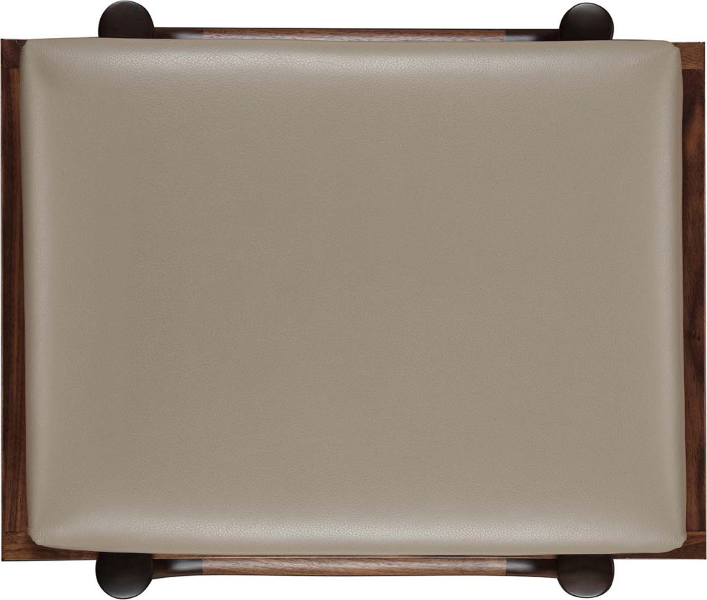 The Walnut Grove Footstool nestles delicately beneath the Cocktail Table or holds its own as an accent piece. It features four gracefully tapered legs connected to a shaped wooden frame, and the tightly upholstered seat is available in fabric or leather.