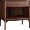 The Walnut Grove Nightstand offers ample storage with its floating box drawer and open shelving. Flowing round posts beautifully showcase the charm of rich walnut, and its flexible design means it can function equally well as an end table.