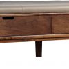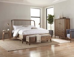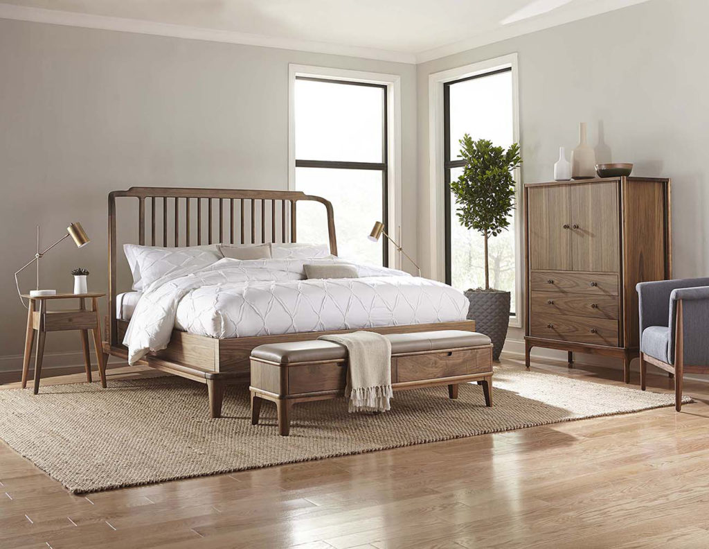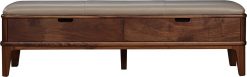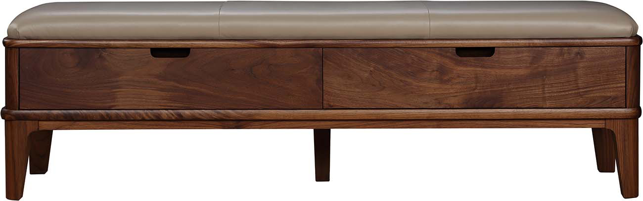 The Walnut Grove Bench offers a tightly upholstered seat atop beautifully tapered legs and two spacious, functional drawers. It’s designed to be flexible enough for any room setting and is available in fabric or leather.