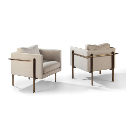 Height to top of back cushion 33 in approx. Base and legs brushed bronze.