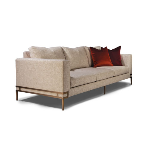 Height to top of back cushion 34 inches approx. Legs brushed bronze. Throw pillows optional.