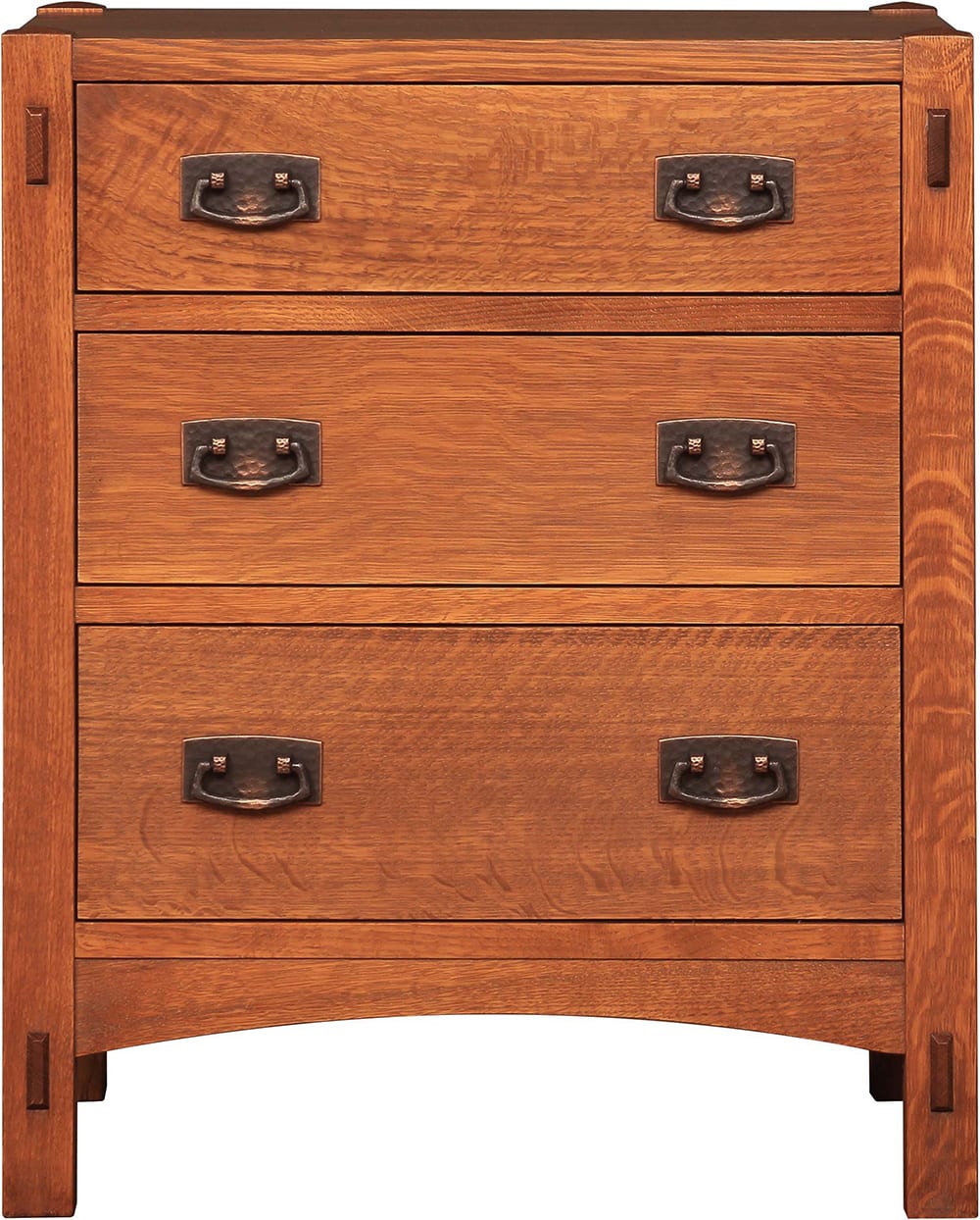 A handsomely proportioned nightstand with three side-hung and center-guided drawers, this piece is part of the April 1989 reissued Mission Collection. Available in solid oak.