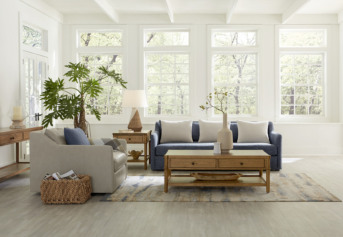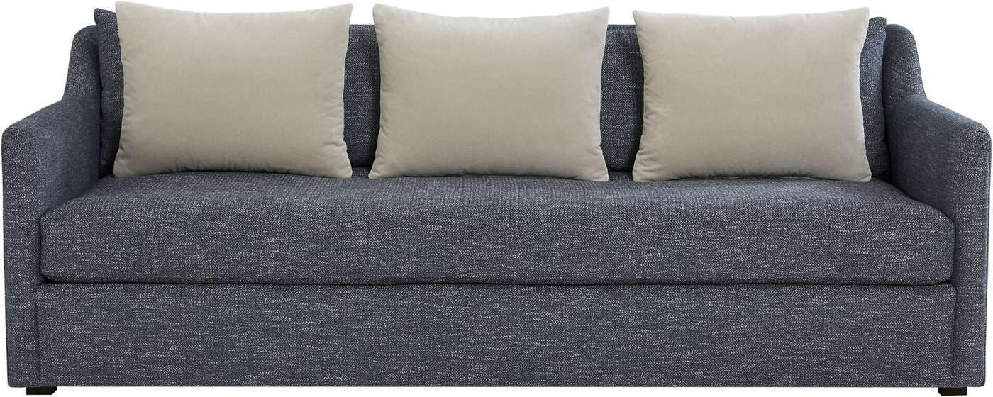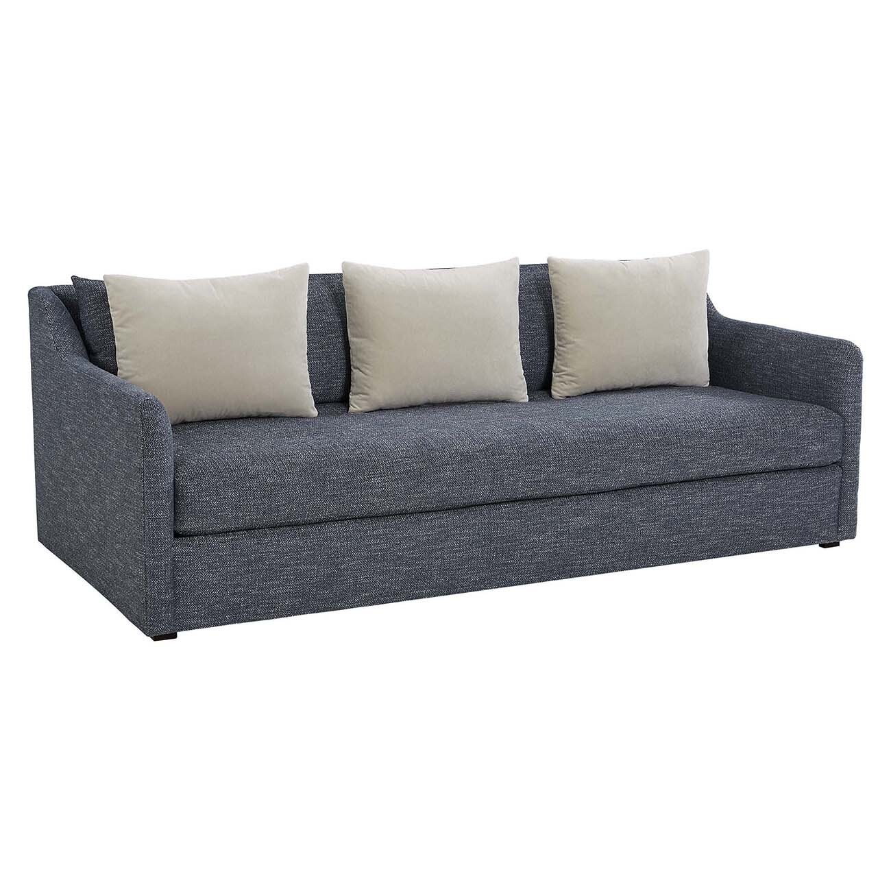 Our low-profile Tibbett Sofa draws the eye with its clean, transitional design, then wins you over with deep, sumptuous comfort. Thin arms rise into low wings that cradle two knife-edge back pillows, with three plush kidney pillows resting in front. Equally luxurious is the loose bench cushion that spans the sofa’s length, uninterrupted by gaps or welts.