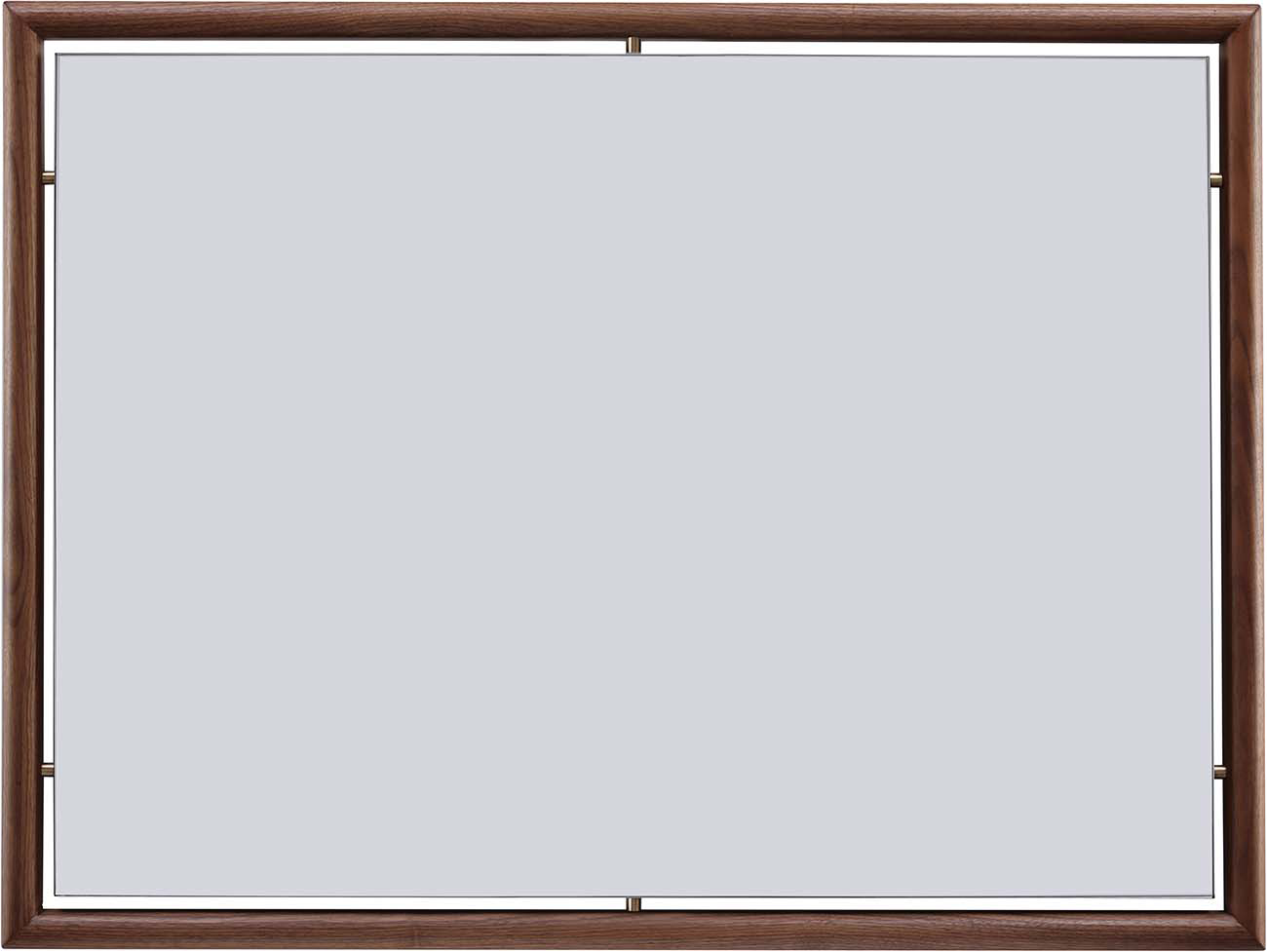 Thoughtfully designed to hang vertically or horizontally, the Walnut Grove Mirror features rounded posts that define its solid walnut frame. Brass accents connect the elements to create the illusion of floating glass.